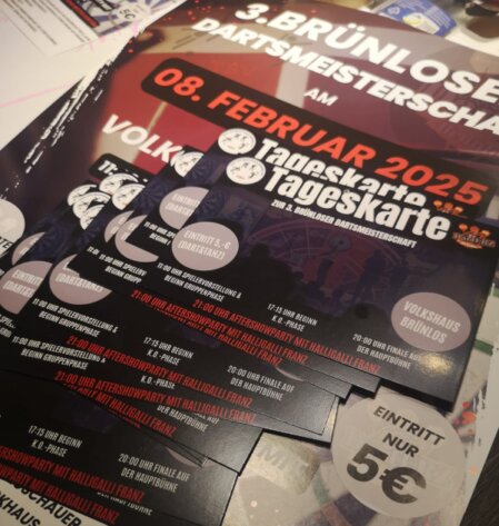 +++Ticketinformationen zur 3. Brünloser Dartsmeisterschaft am 08.02.2025+++